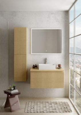 Colonne de salle de bains 2 portes placage chêne miel strié H.150 cm, Pura+