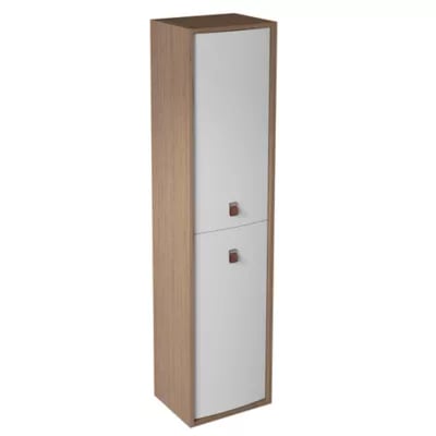 Meuble colonne de salle de bains 2 portes l.30 x H.120 x P.30 cm, blanc mat et bois, Tolima