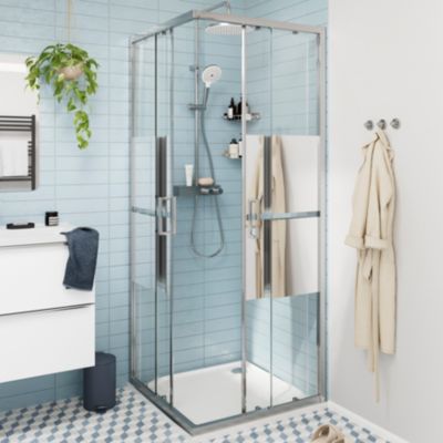 Portes de douche coulissantes accès d'angle l.90 x L.90 x H.195 cm, verre transparent, profilés alu chrome, GoodHome Ledava