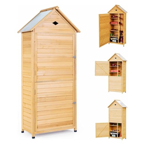 KOMFOTTEU Abri de Jardin en Bois, Abri pour Outils d'Extérieur avec 4 Étagères et 1 Placard, résistant aux Intempéries avec Portes verrouillables, Cabane de Rangement, 80 x 45 x 177cm