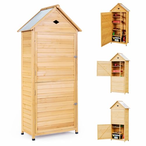 KOMFOTTEU Armoire d’Outils de Jardin en Bois, Portes verrouillables & Toit galvanisé imperméable, Abri de Jardin, 4 Étagères et 1 Placard, Abri pour Outils d'Extérieur, 80 x 40 x 177cm