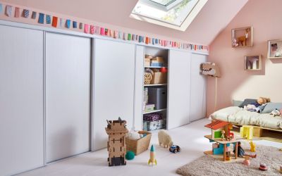 Portes de placard coulissantes blanches effet bois GoodHome Romero H. 250 x l. 90 cm, 2 portes