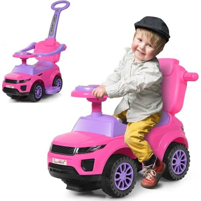 Voiture à Pousser Enfant Porteur Bébé 3-en-1 DREAMADE avec Poignée Amovible Lumières et Musique Rose