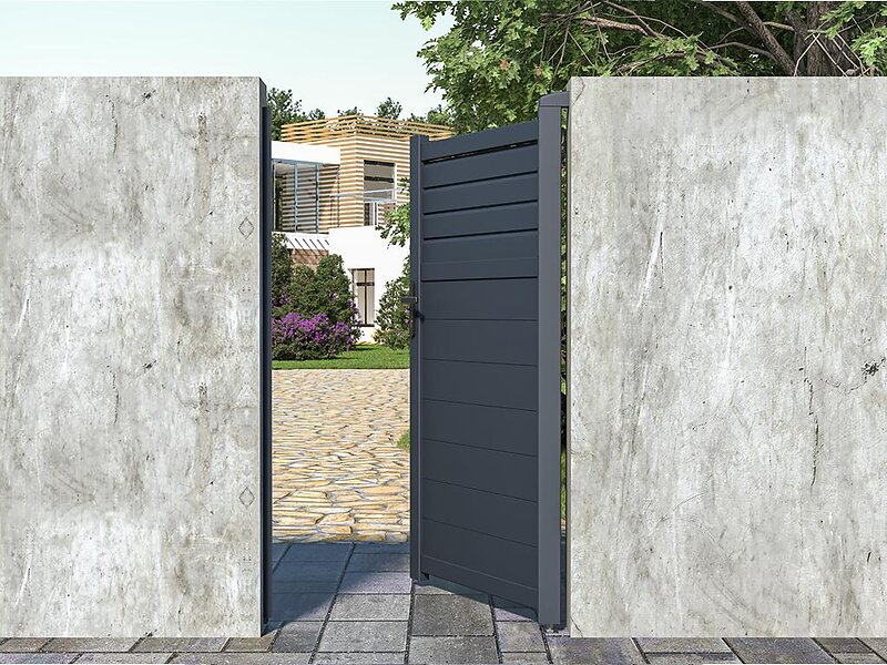 Vente Unique Portillon battant aluminium plein L103 x H181 cm anthracite NAZARIO