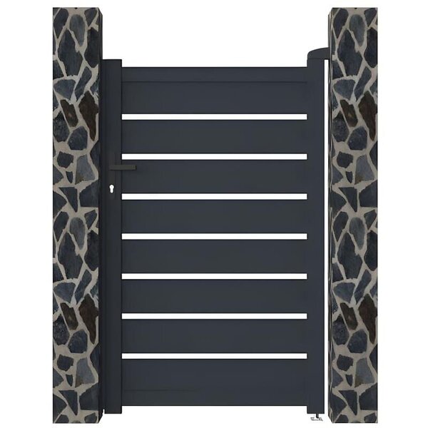 Vente Unique Portillon battant aluminium semi plein à motifs L103 x H181 cm anthracite GREGOR