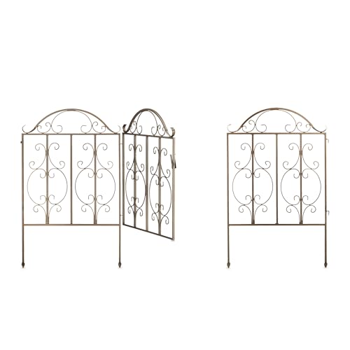 Relaxdays Portillon de Jardin, 3 pièces, Acier, Porte avec Ornements, 2 éléments de clôture, HxL : 98,5 x 185 cm, Bronze