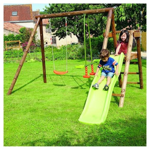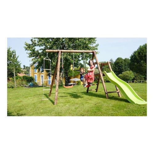 Portique balançoire avec toboggan - Bois - H1,95m - FIGUE