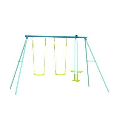Outsunny Balançoire portique pour Enfant avec 2 siège de balançoire, Structure en métal, Charge Max. 90 kg, pour Jardin, Parc, pour garçon Fille de 3 à 8 Ans, Multicolore