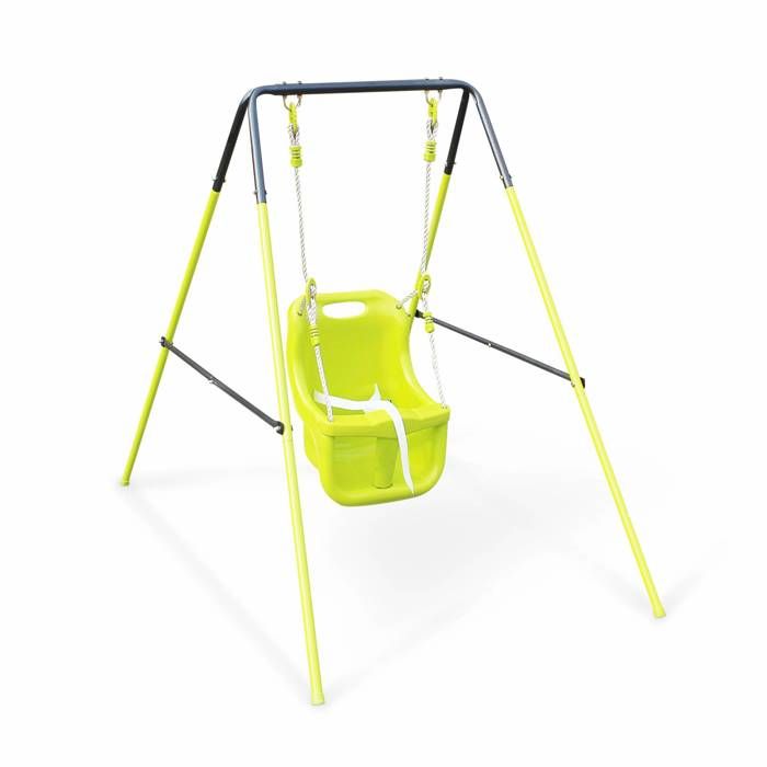 Outsunny Balançoire portique pour enfants de 6 à 36 mois balancoire bebe capacité de charge de 25 Kg en acier hauteur 122 cm vert Aosom France
