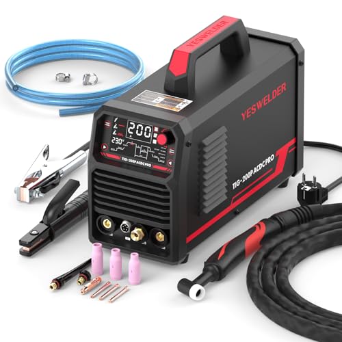 YESWELDER Poste à Souder TIG Aluminium 200A AC/DC avec Impulsion Grand écran LED, Soudeur TIG ARC/TIG 230V à onduleur numérique