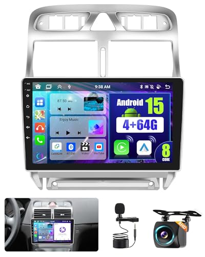 Hikity 2+64GB Android 15 Autoradio Carplay Android Auto sans Fil pour Peugeot 307 2002-2013 Radio Poste Radio Voiture Écran Tactile 9 Pouces Bluetooth Stéréo WiFi GPS FM RDS EQ+ Caméra de Recula