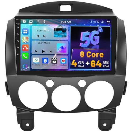 Hikity 8 Core 4+64GB Android 15 Autoradio Wireless Carplay pour Mazda 2 2007-2014 Tactile Écran 9 Pouces Bluetooth Poste Radio Voiture avec GPS, WiFi, EQ DSP, Android Auto, RDS FM, Caméra de Recul