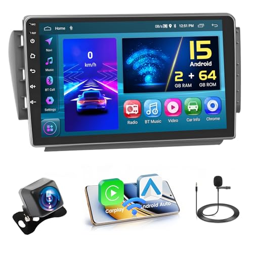 Hikity [2+64GB] Android 15 Autoradio, Carplay Android Auto sans Fil, pour Peugeot 207 2006-2015 Radio Poste Radio Voiture Écran Tactile 9'' Bluetooth Mirror Link WiFi GPS FM RDS USB + Caméra de Recula