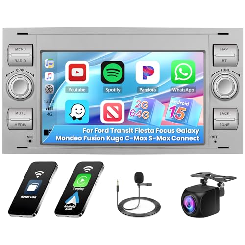 [2G+64G] Autoradio Android13 pour Ford Fiesta Focus Transit Mondeo C-Max S-Max Carplay sans Fil Android Auto 7'' 2 Din Poste Radio avec GPS Bluetooth WiFi RDS FM MIC Caméra de Recul (Blanc)
