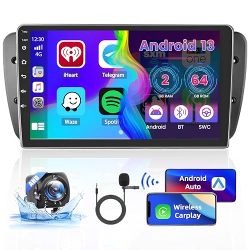 [8 Core 4+64GB] Android 13 Autoradio pour Seat Leon 2005-2012(Mano Izquierda Draive) Radio, Carplay Android Auto sans Fil, Écran Tactile 9" Poste Radio Voiture, Bluetooth GPS WiFi USB+Caméra de Recul