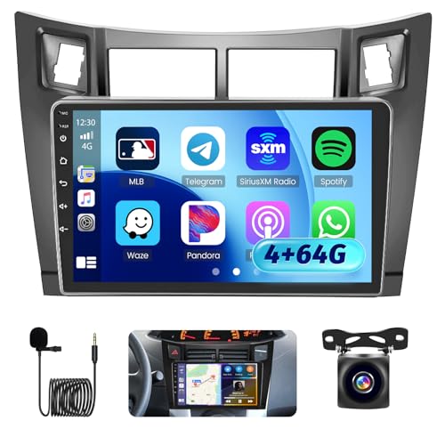 【8Cœurs 4G+64G】 Hikity Autoradio Android 15 pour Toyota Yaris 2007-2011 Carplay sans Fil Android Auto 9'' Poste Radio avec SWC GPS Bluetooth WiFi RDS DSP 3 Écran Partagé Caméra de Recul