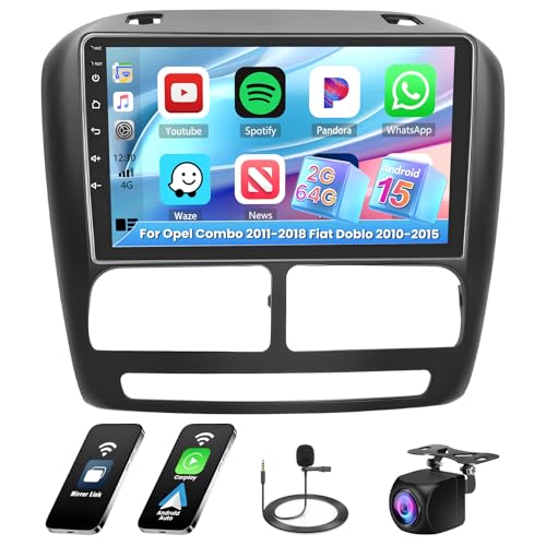 Hikity 2+64G Autoradio Android pour Fiat Doblo 2010-2015/Opel Combo 2011-2018 avec sans Fil Carplay Android Auto, 9'' Pouces Poste Radio Bluetooth WiFi Mirror Link GPS FM RDS DSP SWC MIC Caméra