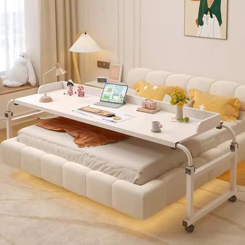 Bureau Au-Dessus du Lit Réglable 115-210cm Table De Lit avec 4 Roues Poste De Travail Debout Plateau De Nourriture Bureau Chariot pour Ordinateur Portable Tables De Lit Ajuster La Hau, White