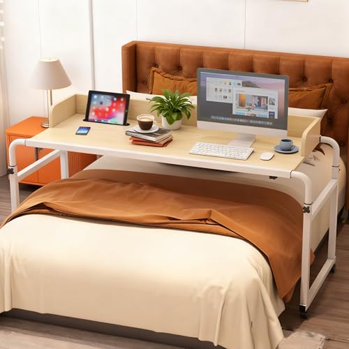 Table D'Ordinateur Roulante Au-Dessus du Lit Le Poste De Travail Debout avec 4 Roulette Verrouillable,Peut êTre SuréLevé De 65 à 95cm Table De Lit pour Lit Jumeau(Color:Blanc)