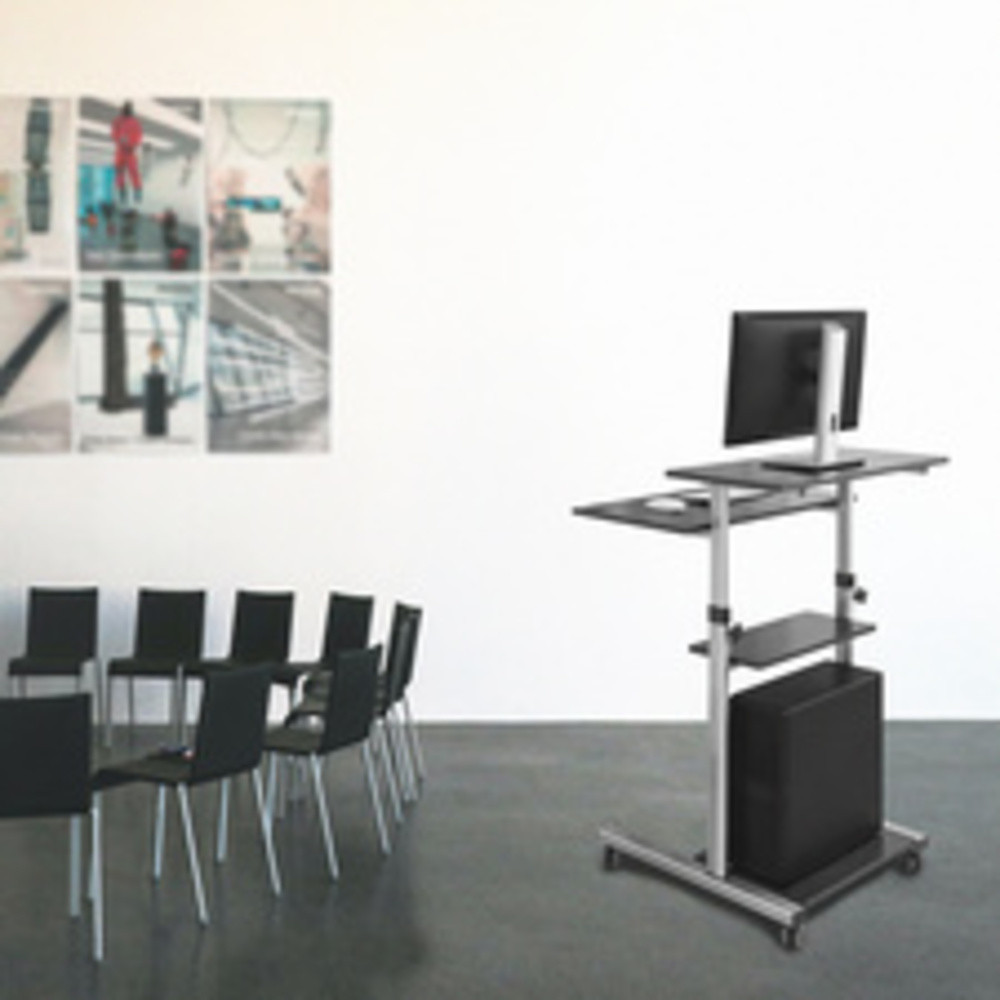 DIGITUS Poste de Travail Debout Mobile - Support pour écran & Plateau pour Clavier & Support pour PC - Réglage Flexible de la Hauteur - 1 écran - jusqu'à 32 Pouces - VESA 75x75, 100x100 - Noir
