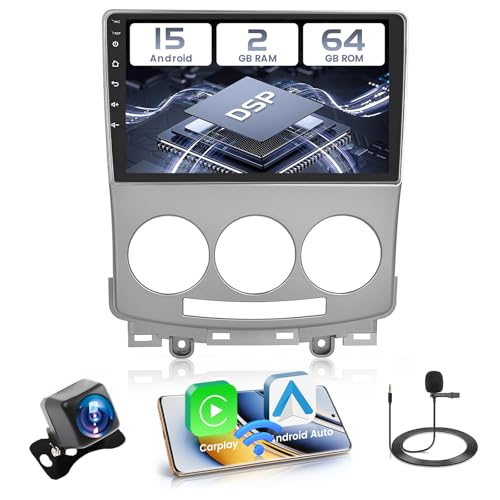 Hikity 2+64GB Android 15 Autoradio pour Mazda 5 2007 2008 2009 2010 Radio Carplay Android Auto, IPS Écran Tactile 9’’ Poste Radio Voiture, Bluetooth Stéréo, GPS, WiFi, Mirror Link