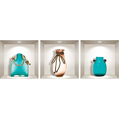 Stickers adhésifs 3D | Sticker Mural Autocollant effet 3D vases bord de mer - Stickers muraux Chambre Adulte - Stickers muraux 3D - Decoration Murale Salon - Autocollants muraux Trompe l'oeil |30x90cm