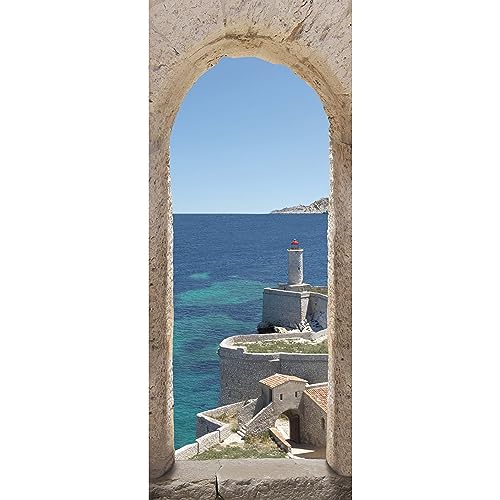 A.Monamour Sticker Porte Autocollant Poster De Porte 3D Porte De Simulation Avec Vue Sur La Mer Vinyle Affiche De Porte Sticker Mural Papier Peint Art Décor 85 x 215 cm