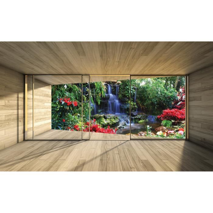 Papier Peint Photo INTISSÉ-(3313V8T) PAYSAGE DE JARDIN 3D-368x254cm-8 lés-Mural Poster Géant XXL-Beach Mer Océan Nature Jungle