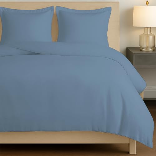 Pizuna Coton peigné Ensemble de Housses de Couette 220x240 cm 2 Personnes Bleu poussiéreux, 100% Coton Longue Tige 400 Fils Armure Satin, Housse de Couette de Luxe avec Fermeture à Boutons (240x220cm)