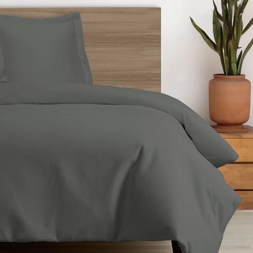 Pizuna Coton peigné Ensemble de Housses de Couette 140x200 cm 1 Personne Gris foncé, 100% Coton Longue Tige 400 Fils Armure Satin, Housse de Couette de Luxe avec Fermeture à Boutons Gris foncé