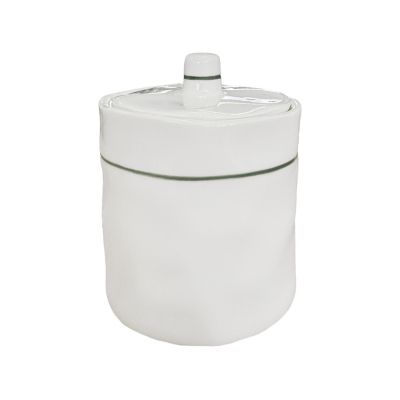 Pot à coton avec couvercle céramique, blanc et ligne verte, Levasseur Line