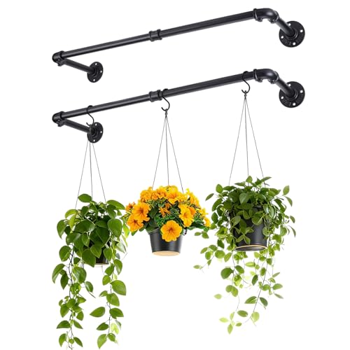 Bigmeta Lot de 2 Supports de Plantes d'intérieur à Forte capacité de Charge - Tige en métal Noir pour décoration Murale et Plafond (chaîne de Pot et Plante Non incluses)