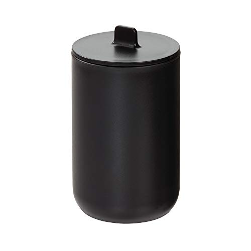 iDesign Rangement Coton avec Couvercle, Rangement Salle de Bain Rond pour Cosmétiques et Maquillage, Pot de Rangement à cotons et Cotons-Tiges en Plastique, Noir