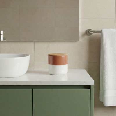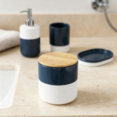 Pot à coton en céramique et bambou, blanc, GoodHome Cervia