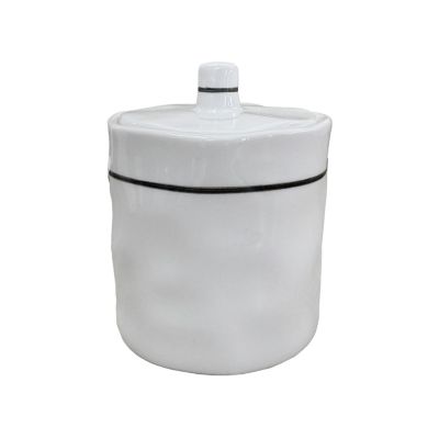 Pot à coton avec couvercle céramique, blanc et ligne noir, Levasseur Line