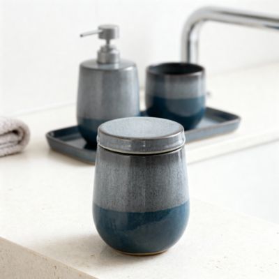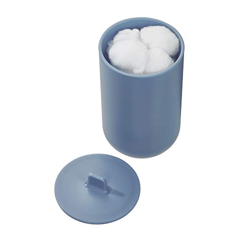 iDesign Rangement Coton avec Couvercle, Rangement Salle de Bain Rond pour Cosmétiques et Maquillage, Pot de Rangement à cotons et Cotons-Tiges en Plastique, Bleu