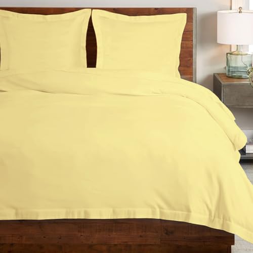Pizuna Coton peigné Ensemble de Housses de Couette 140x200 cm 1 Personne Jaune Doux, 100% Coton Longue Tige 400 Fils Armure Satin, Housse de Couette de Luxe avec Fermeture à Boutons Jaune Doux