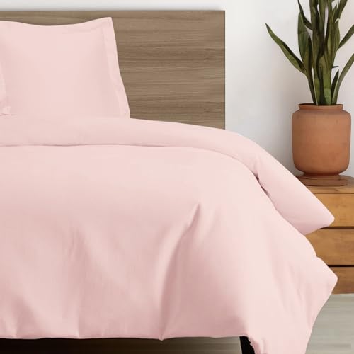 Pizuna Coton peigné Ensemble de Housses de Couette 140x200 cm 1 Personne Rose Clair, 100% Coton Longue Tige 400 Fils Armure Satin, Housse de Couette de Luxe avec Fermeture à Boutons Rose Clair
