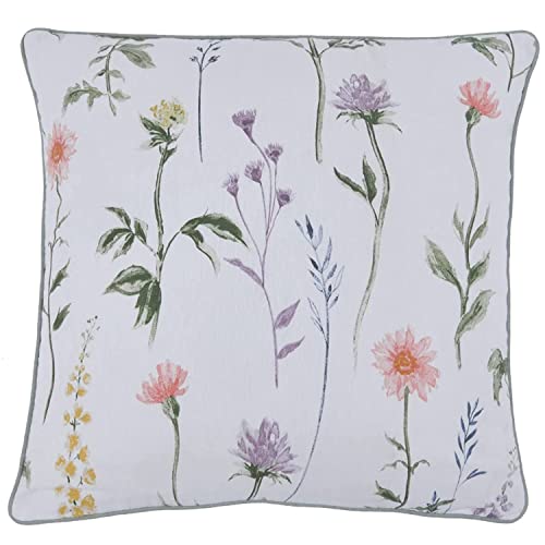 Sleepdown Coussin décoratif en Coton Doux avec Tige de Prairie pour décoration d'intérieur, canapé, Chambre à Coucher et Voiture - 45 x 45 cm - Blanc Multicolore