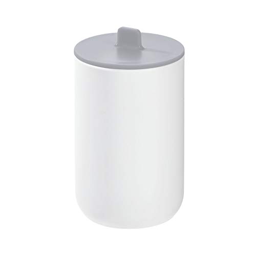 iDesign Rangement Coton avec Couvercle, Rangement Salle de Bain Rond pour Cosmétiques et Maquillage, Pot de Rangement à cotons et Cotons-Tiges en Plastique, Blanc et Gris