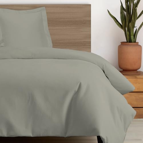 Pizuna Coton peigné Ensemble de Housses de Couette 140x200 cm 1 Personne Simplement Taupe, 100% Coton Longue Tige 400 Fils Armure Satin, Housse de Couette de Luxe avec Fermeture à Boutons
