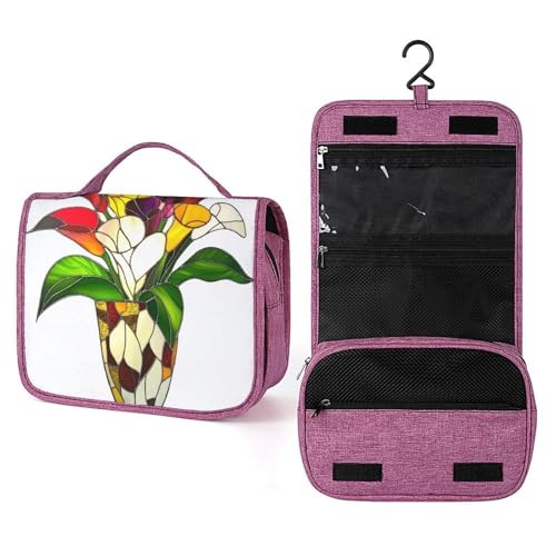 Trousse de toilette de voyage en céramique avec lys calla dans un pot de fleurs en mosaïque pour femme, organisateur de maquillage à suspendre avec crochet pour shampooing