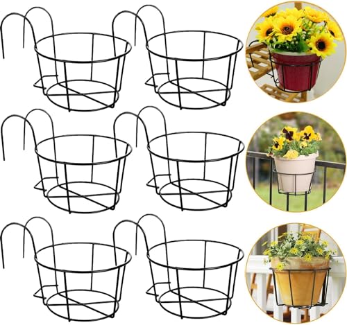 EATHEATY Lot de 6 paniers ronds à suspendre pour pot de fleurs, support de pot de fleurs, support en fer avec crochet amovible pour balcon, jardin, intérieur et extérieur, noir