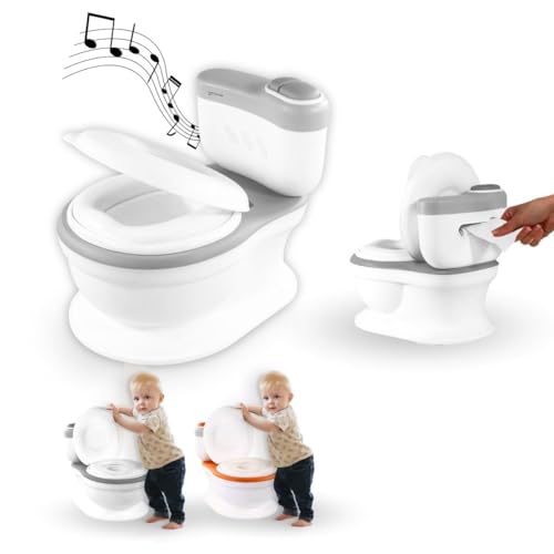 Interbaby Pot Bébé Toilette Musical avec Bruit de Chasse d’Eau | Pot Enfant WC Réaliste pour Apprentissage de la Propreté | Toilette Enfant Antidérapante avec Porte Papier | 18+ Mois, (Blanc)
