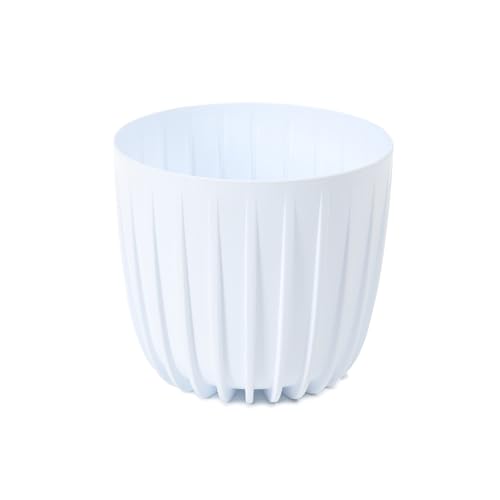 LAMELA Cache-Pot Rainuré en Plastique - Ø 16 x H 14,3 cm, 2,2 L - Léger et Robuste - Résistant et Facile d'entretien - Intérieur et Extérieur - Blanc