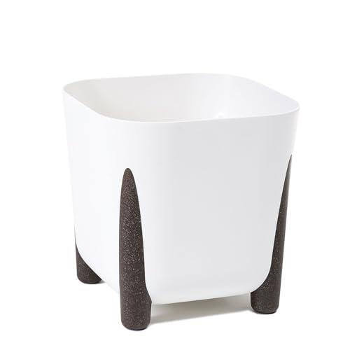 LAMELA Pot de Fleurs avec Drainage 21 cm, 6L - Pot sur Pieds Stylés - Plastique Intérieur et Extérieur, Blanc