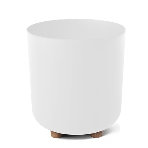 Dexceder Pot de fleurs haute brillance à arrosage automatique pour intérieur et extérieur, design pot de fleurs de table épais avec indicateur de niveau d'eau (blanc) 22,9 x 20,3 cm