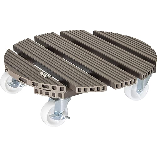 Wagner Support à roulettes pour Pot de Fleur WPC Ø 29 x 7,5 cm I intérieur + extérieur I Roule Pot en FSC® Composite Bois-Plastique, Taupe, 2 Freins I Capacité de Charge 100 kg - 20053601