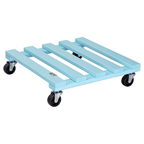 WAGNER Support à roulettes pour pot de fleur AQUA SPLASH 38 x 38 x 9,5 cm I intérieur + extérieur I Roule pot en bois massif certifié FSC®, turquoise I Capacité de charge 120 kg I Made in EU- 20042301