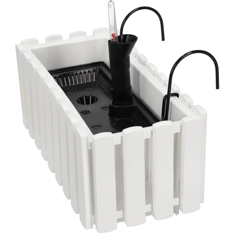 Pot de fleurs pour balcon et terrasse avec crochets et système d'irrigation Blanc 40 cm